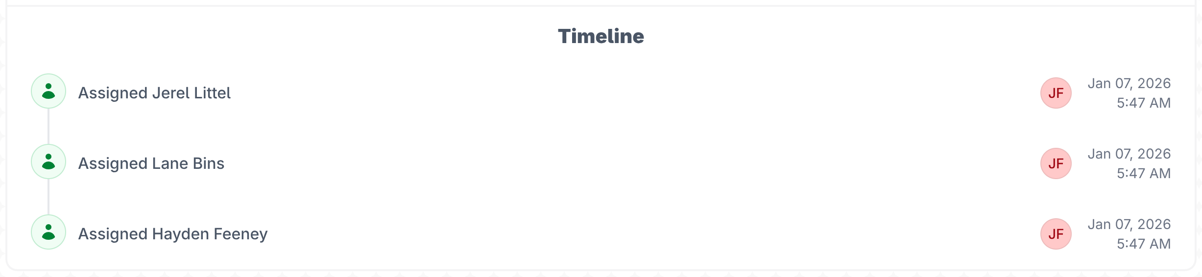 The timeline documents everything that has been associated with this location. Every asset, subscription, and person. Every activity is recorded in one place, and each timeline entry can be edited with a single click.